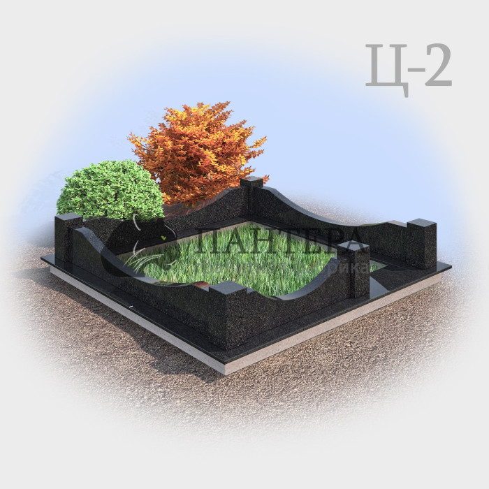 Резной волнами цоколь из черного гранита необычное и красивое ограждение территории захоронения.