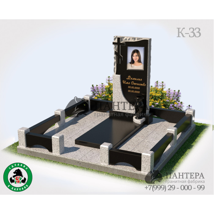 ♦ Периметр захоронения огражден каменным цоколем с чередованием цветных кубов в едином стилистическом решении. Ограда завершает внешний вид могилы и подчеркивает ухоженность захоронения.