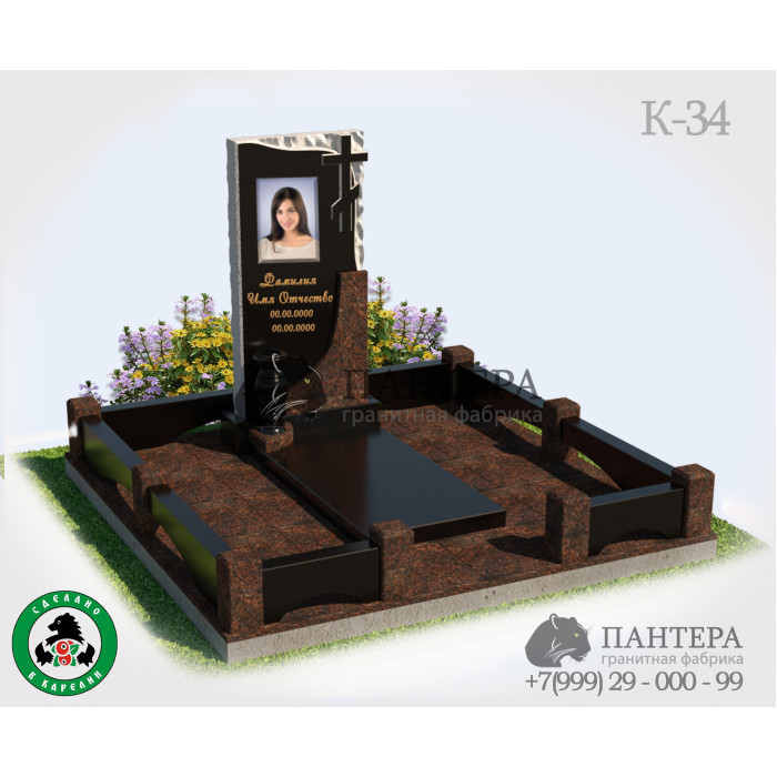 Мемориальный комплекс с крестом подойдет под захоронение двух человек. История появления креста в православии очень интересна. Этот древний символ почитался еще до возникновения христианства и имел сакральное значение. В средние века крест стал прочно ассоциироваться со смертью и воскрешением Христа, приобрел христианское значение. Равносторонний крест выражает идею божественного присутствия, могущества и силы. Мы изготовим памятник по Вашему желанию, в основе использован черный гранит, а дополняет его коричневый гранит. Мемориальный комплекс рассчитан на участок 2*2м или 1,8*2м.