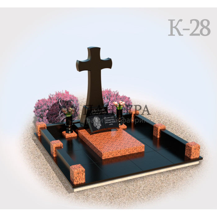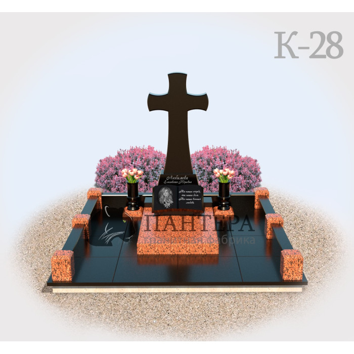 Мемориальный комплекс К28 – готовый проект памятника. Цельный и законченный вид мемориала можно получить, применяя только комплексный подход к вопросу благоустройства захоронения. Включает в себя все необходимое для создания красивого захоронения.