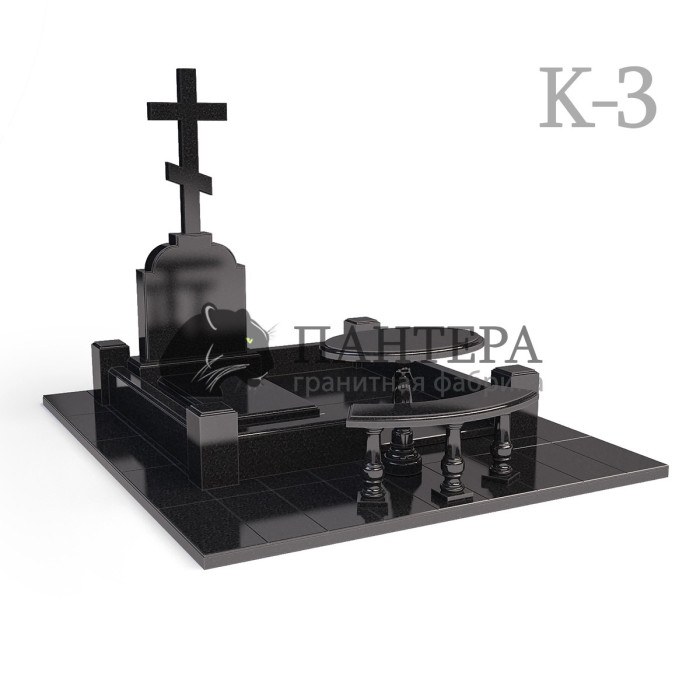 ♦ По ритуальной традиции, при посещении захоронения, близкие люди любят присесть за столик, пообщаться с потусторонним миром, разложить еду и напитки. Мы добавили в комплекс этот практичный и удобный комплект, каменные стол и скамейку. Оба изделия разработаны из карельского черного гранита, округлых форм, на резных ножках.